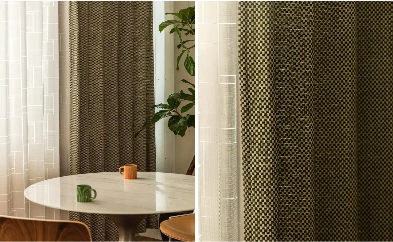 この度のイベントに合わせ、1970sヴィンテージファブリックからインスパイアされた特別なカーテ ン2種類を開発いたしました。こちらのカーテンは全店舗でお買い求めいただけます。 |