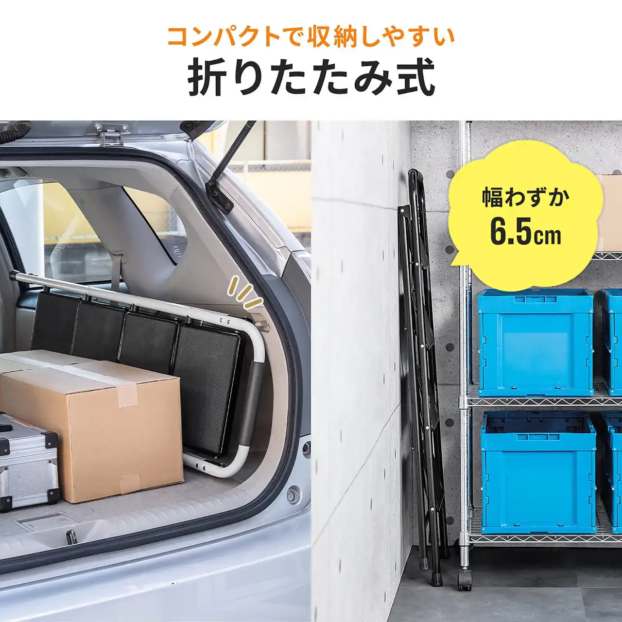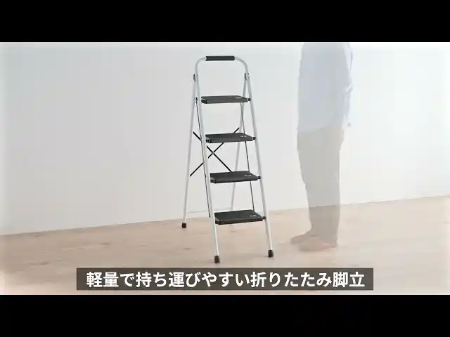 | 厚さわずか6.5cmに折りたたんで省スペースに収納できる4段脚立 |
