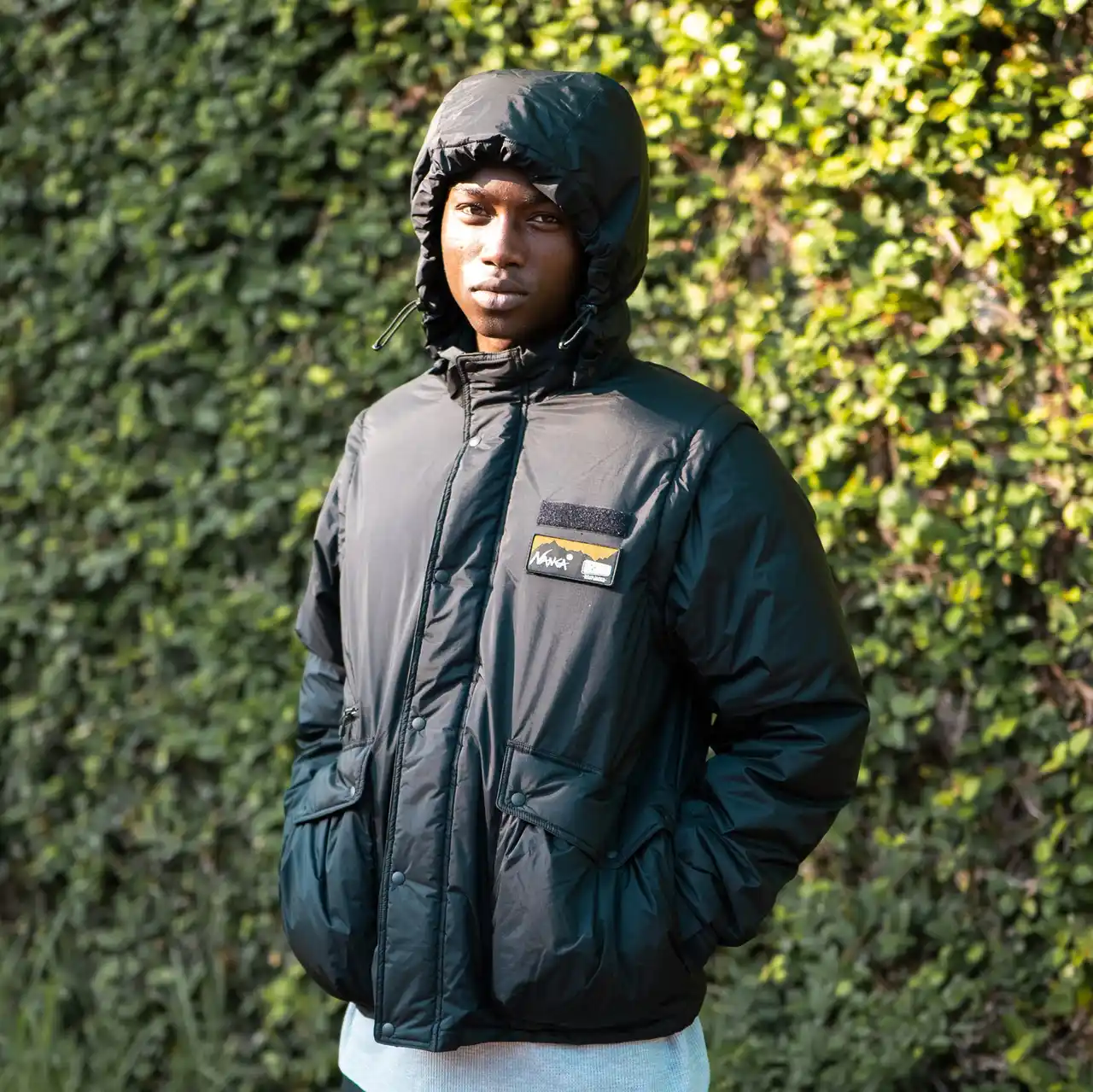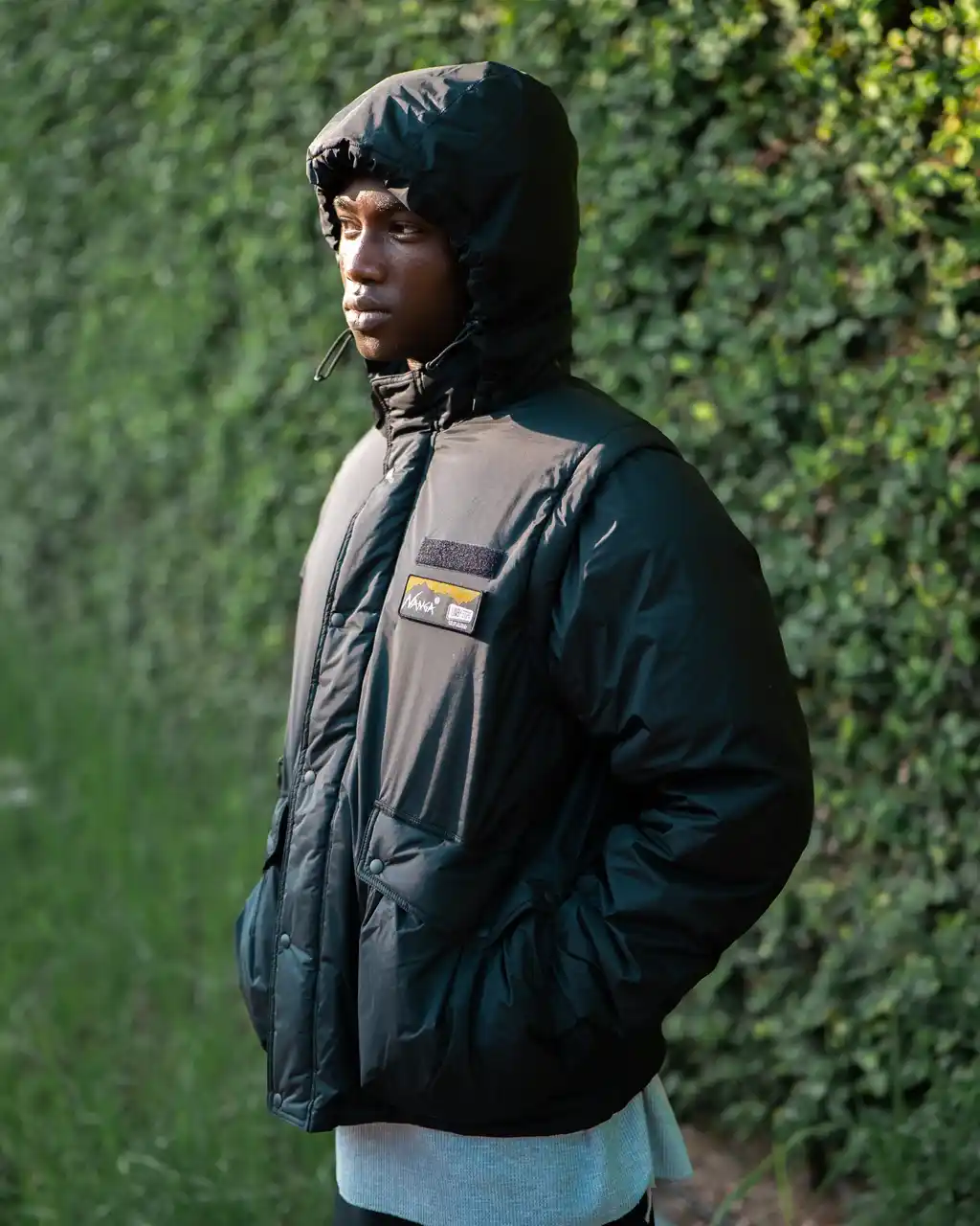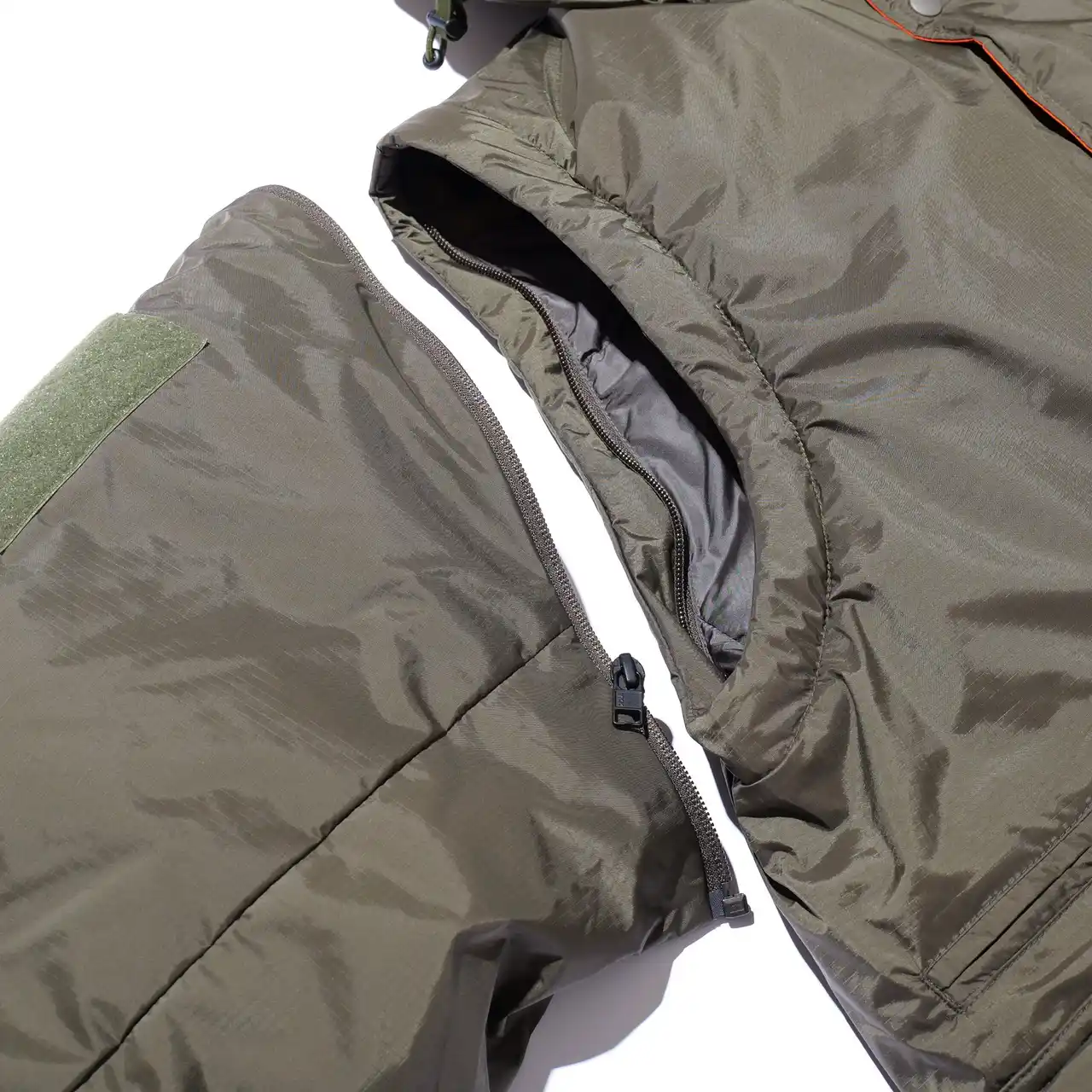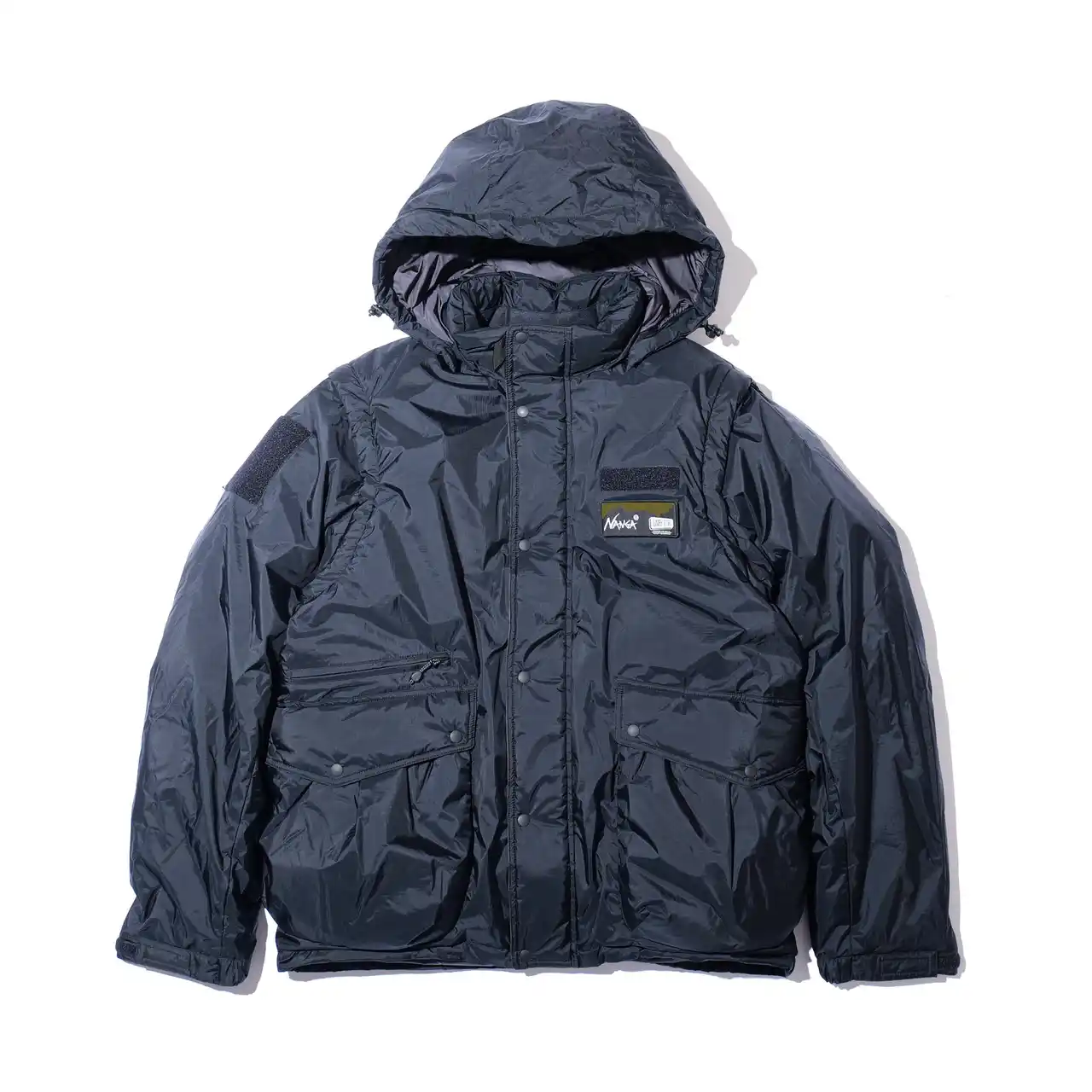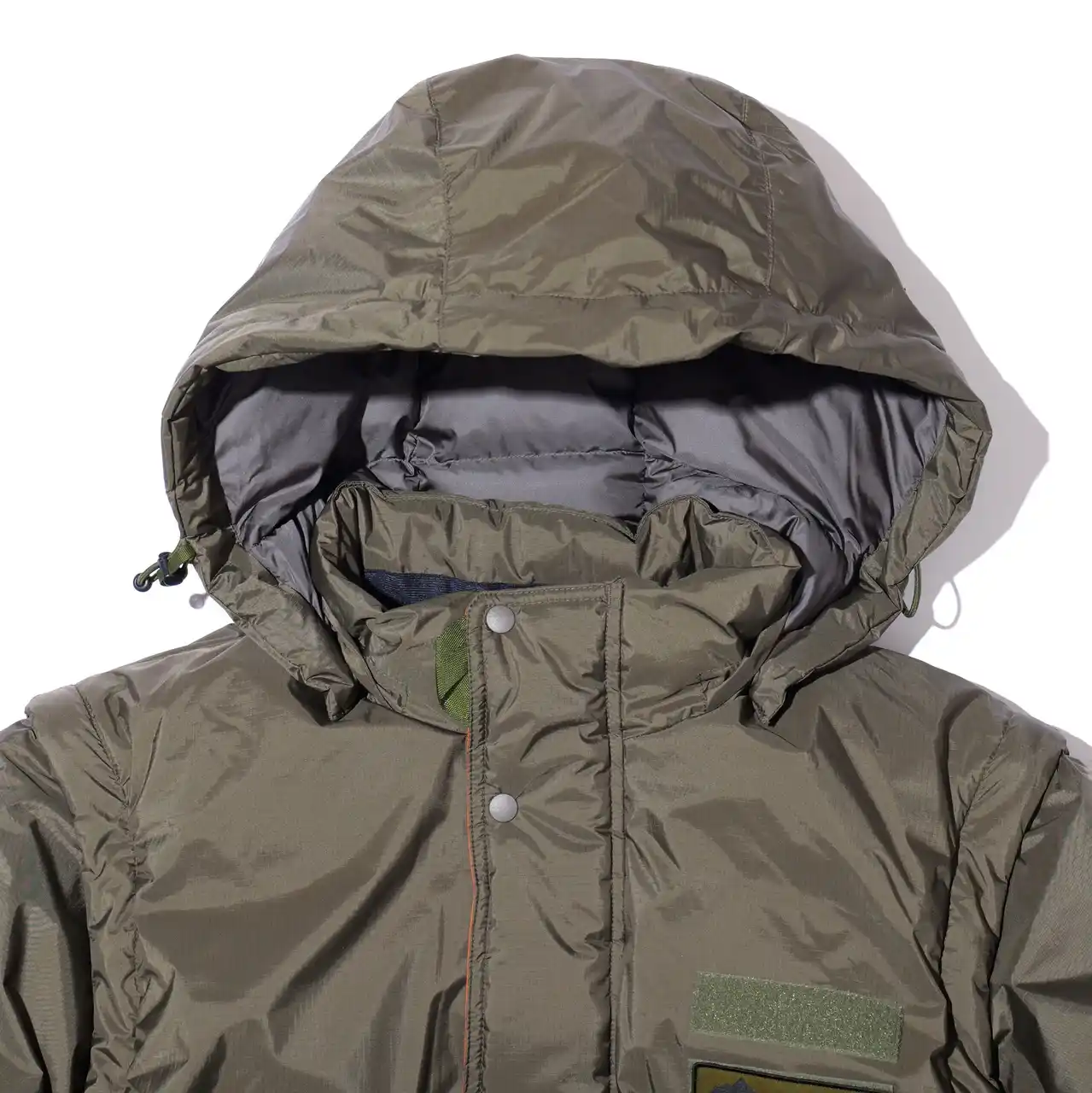 インラインの難燃素材のダウンをベストをベースに作られ、袖とフードは取り外しができるデタッチャブル仕様に。 高いフィルパワーを誇るダウンジャケットのデメリット「着られる時期の短さ」をクリアし、秋口から春先まで長く楽しめるようにしました。 |