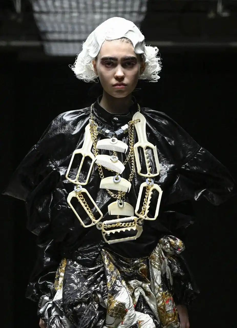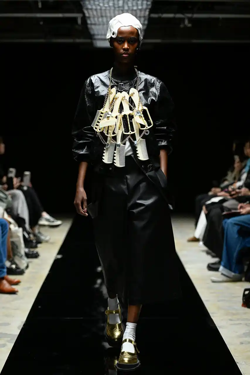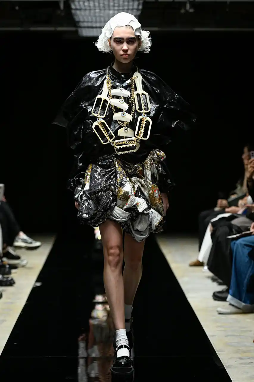今季のショーでは、「BLACK & GOLD」をテーマに掲げ、これまで使用したことのない新たな素材や、フェイクレザー、メタリック素材などの素材が取り入れられました。 |