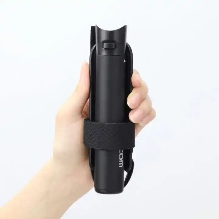 スティック部分を回すだけで手のひらサイズに折りたたみ可能。持ち運びにも便利です。 |