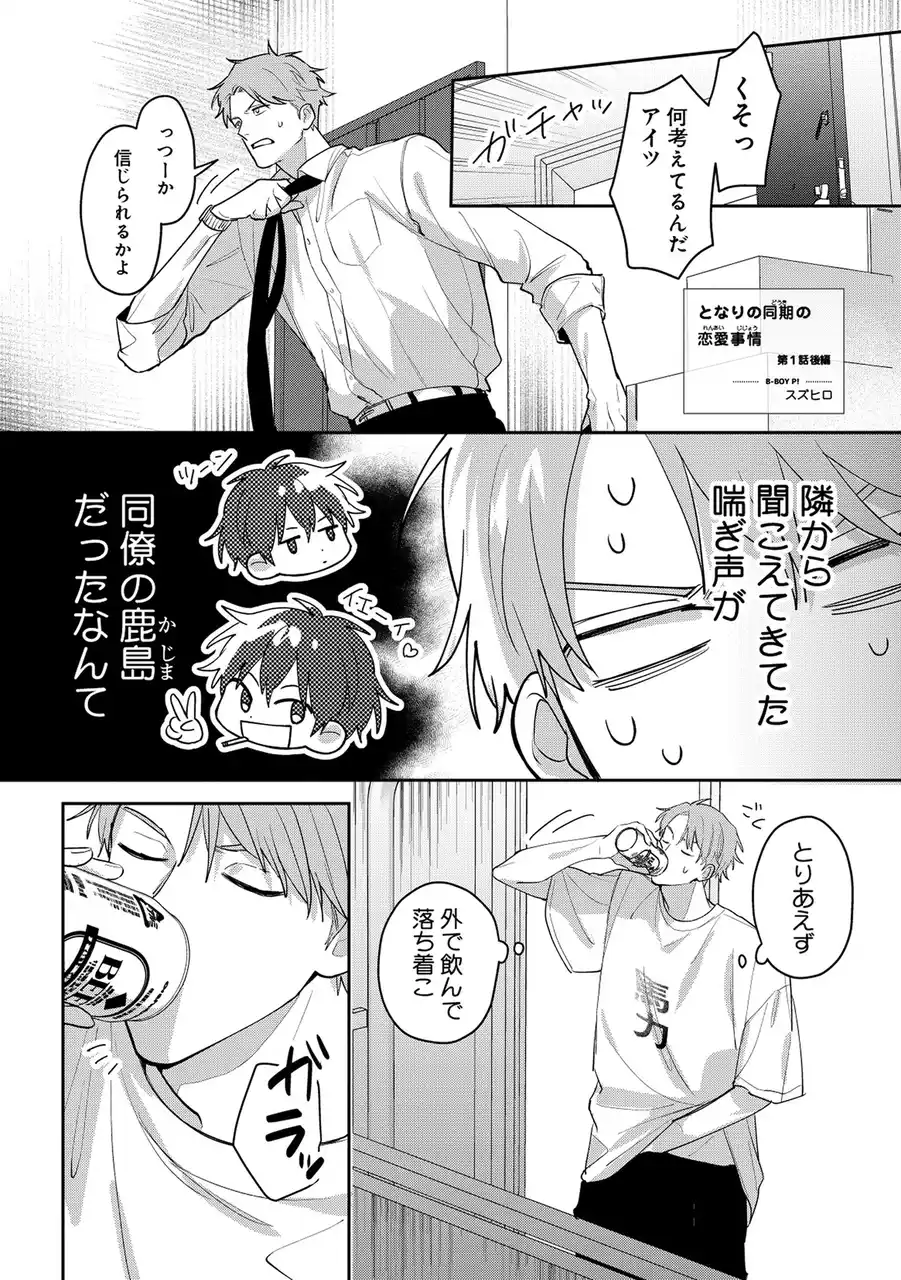 ●作品ページ「となりの同期の恋愛事情」 ⇒ https://comic.pixiv.net/works/12178 ●作者SNSアカウント: X)https://x.com/suzu_hiroo916 pixiv)https://www.pixiv.net/users/109857684 ●ビーボーイP! ⇒ https://comic.pixiv.net/magazines/142 ●ビーボーイP!編集部X(旧:Twitter)(@b_boy_p) ⇒ https://x.com/b_boy_p ●ビーボーイ編集部X(旧:Twitter) (@bboy_editor) ⇒ https://x.com/bboy_editor |