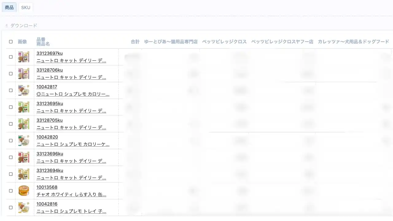店舗別売上を元に各サイトでどの商品が売れているのかをワンクリックで確認 |