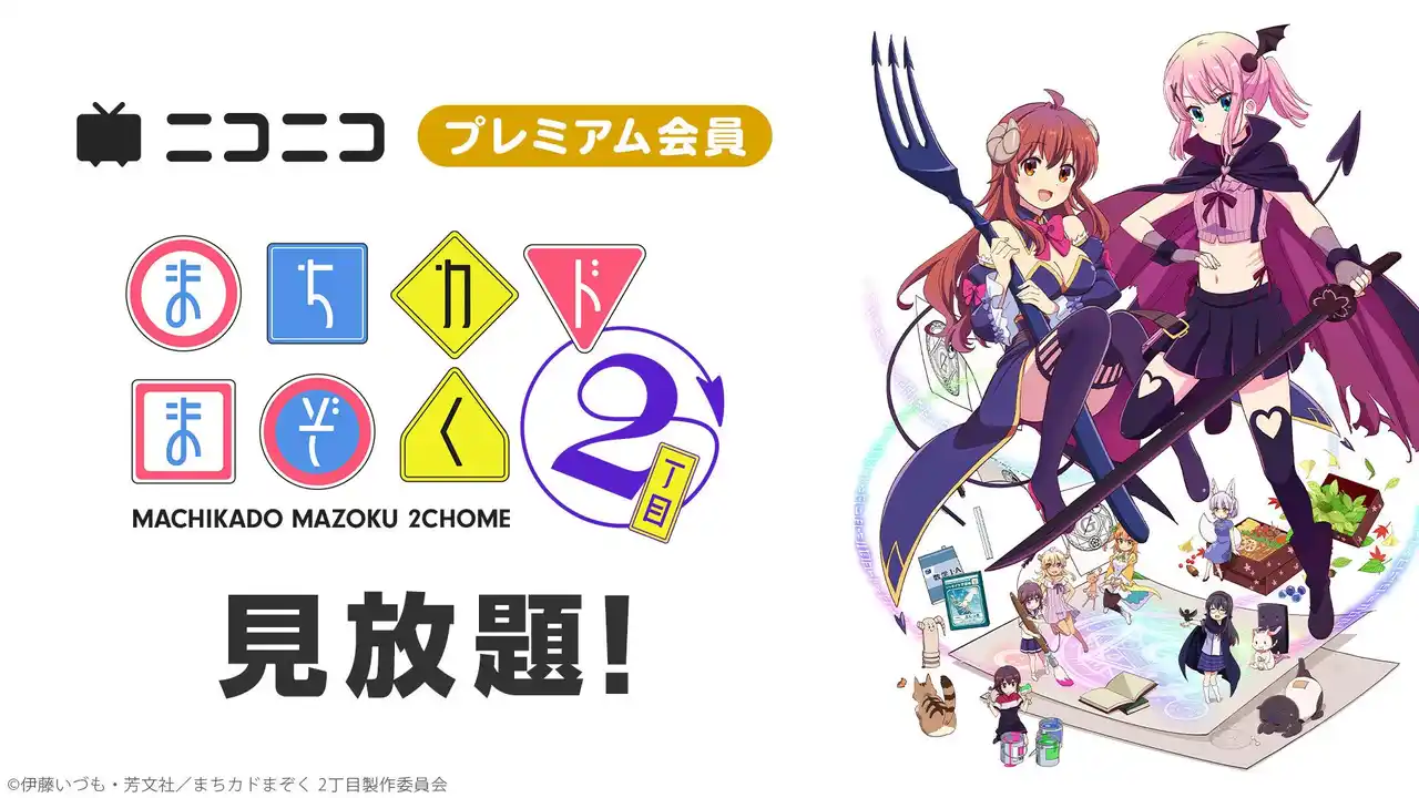 株式会社ドワンゴは、動画配信サービス「ニコニコチャンネル」にて、2025年9月1日(月)12時00分より、テレビアニメ『まちカドまぞく』『まちカドまぞく 2丁目』をニコニコプレミアム会員(月額790円・税込)限定で見放題配信します。