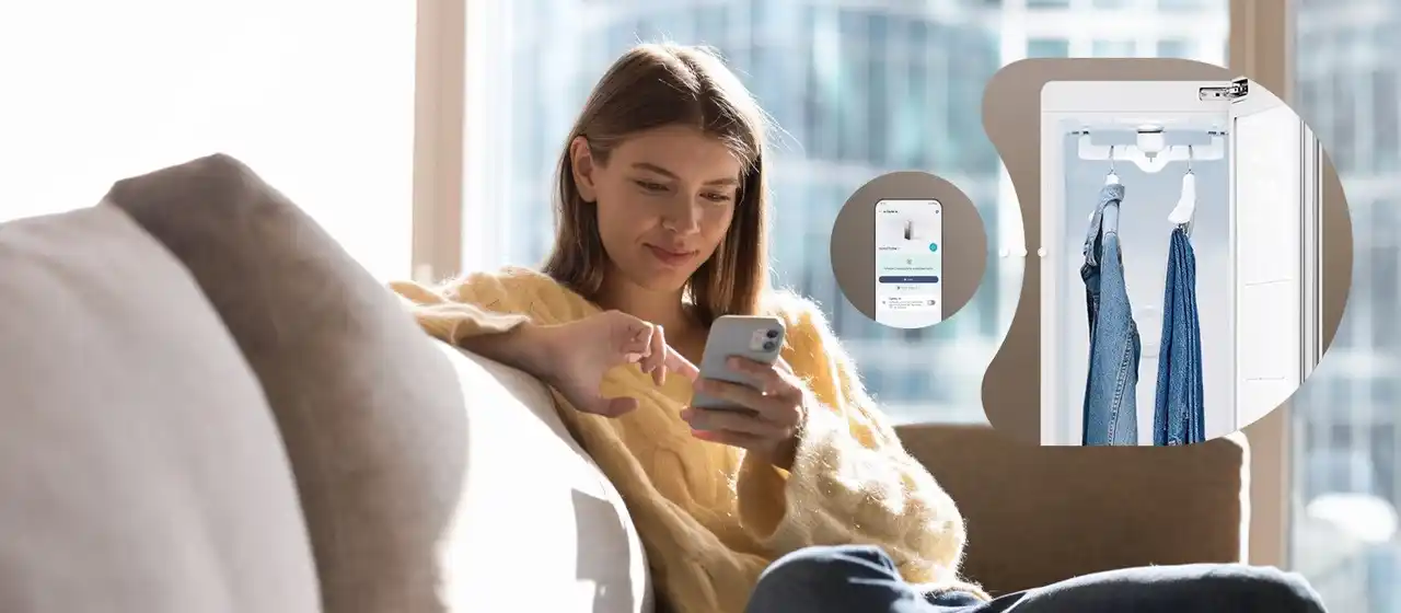 搭載されているコースだけでなく、「LG ThinQ(R)」アプリ経由で、12種類のコースの中から(※5)、自分好みのコースを追加ダウンロードすることができ、ライフスタイルに合わせてLG Stylerを自由にアップデートできます。また、アプリからコース選択や、仕上がり時間の確認ができるため、いつでもどこでもLG Stylerに入れた衣服をモニタリングできます。 |