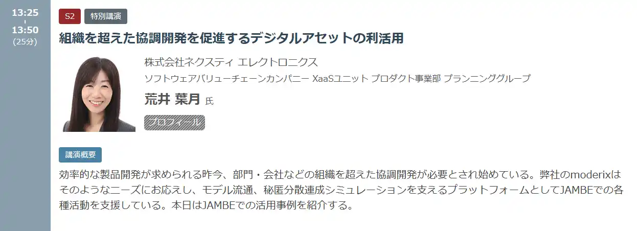 講演タイトル:「組織を超えた協調開発を促進するデジタルアセットの利活用」 |