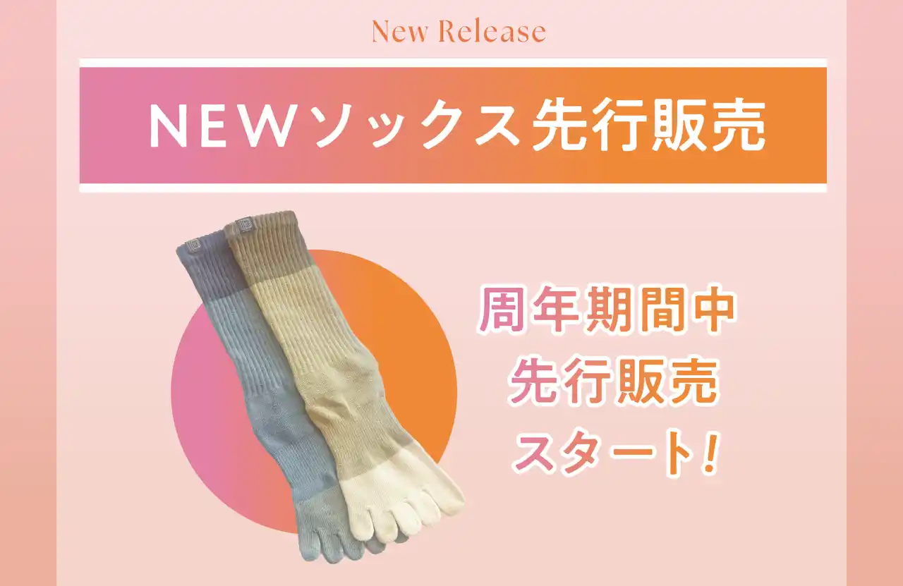 | 人気No.1アイテム「ピラティスソックス」から、待望のロング丈タイプを店頭にて周年期間中に数量限定にて先行発売。 | |||