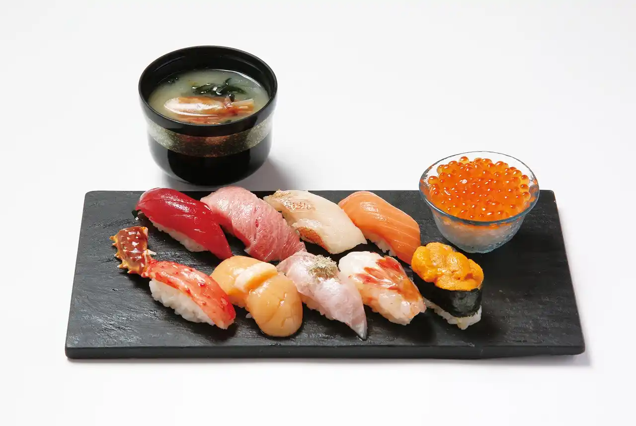 秋の旬握りといくら小丼(9貫、汁付)6,710円〈各日50点限り〉 |