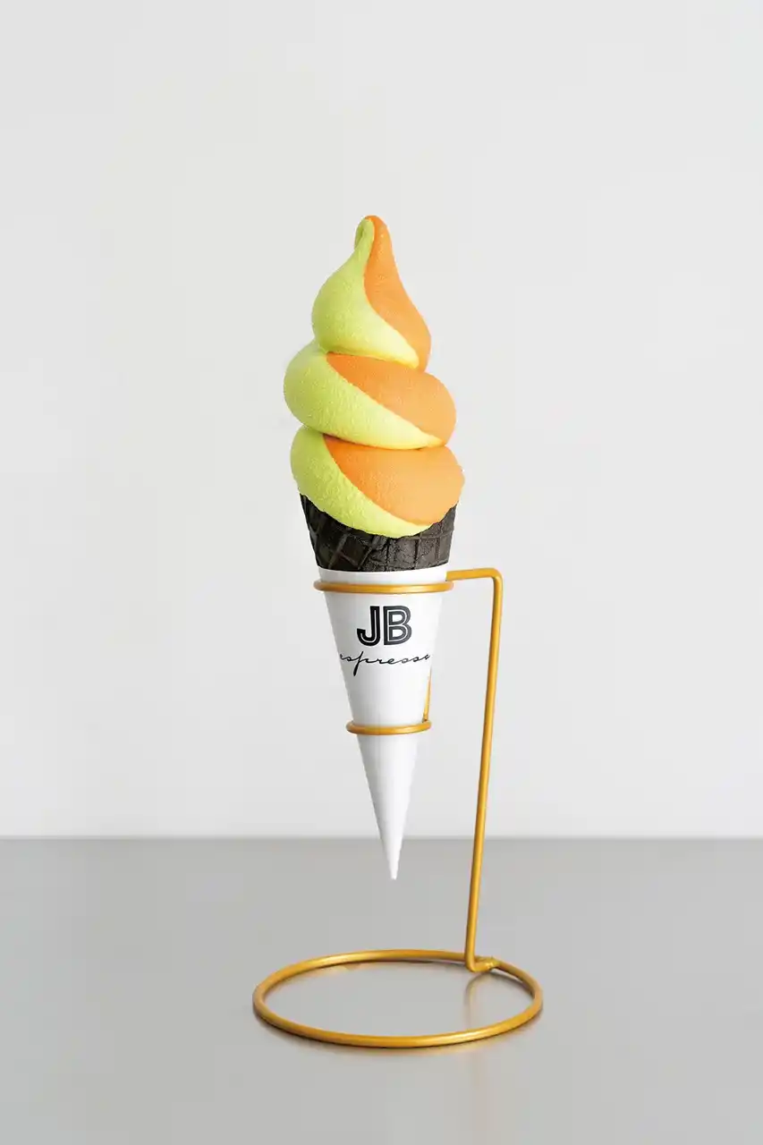 十勝牛乳のソフトクリームに富良野メロンをトッピングしました。 |