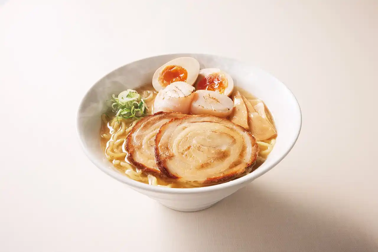 濃厚な塩味の豚骨スープと帆立は相性抜群 |