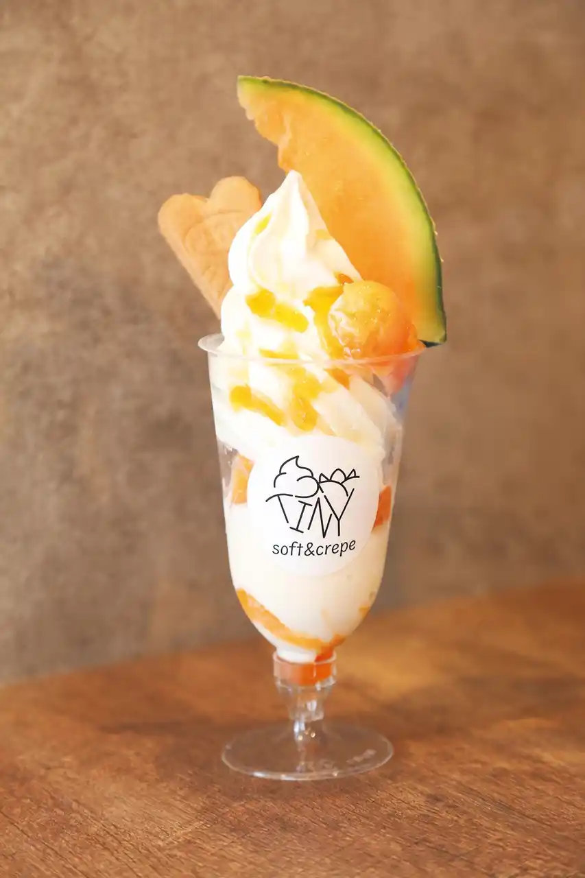富良野メロンと十勝牛乳ソフトの贅沢パフェ(1個)1,200円〈各日50点限り〉 |