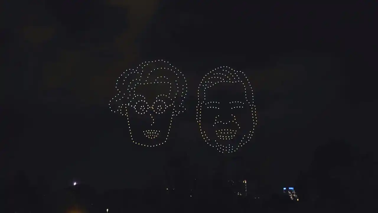 | ~500機のドローンが夜空に描く、“お笑いと告知”の融合~ |