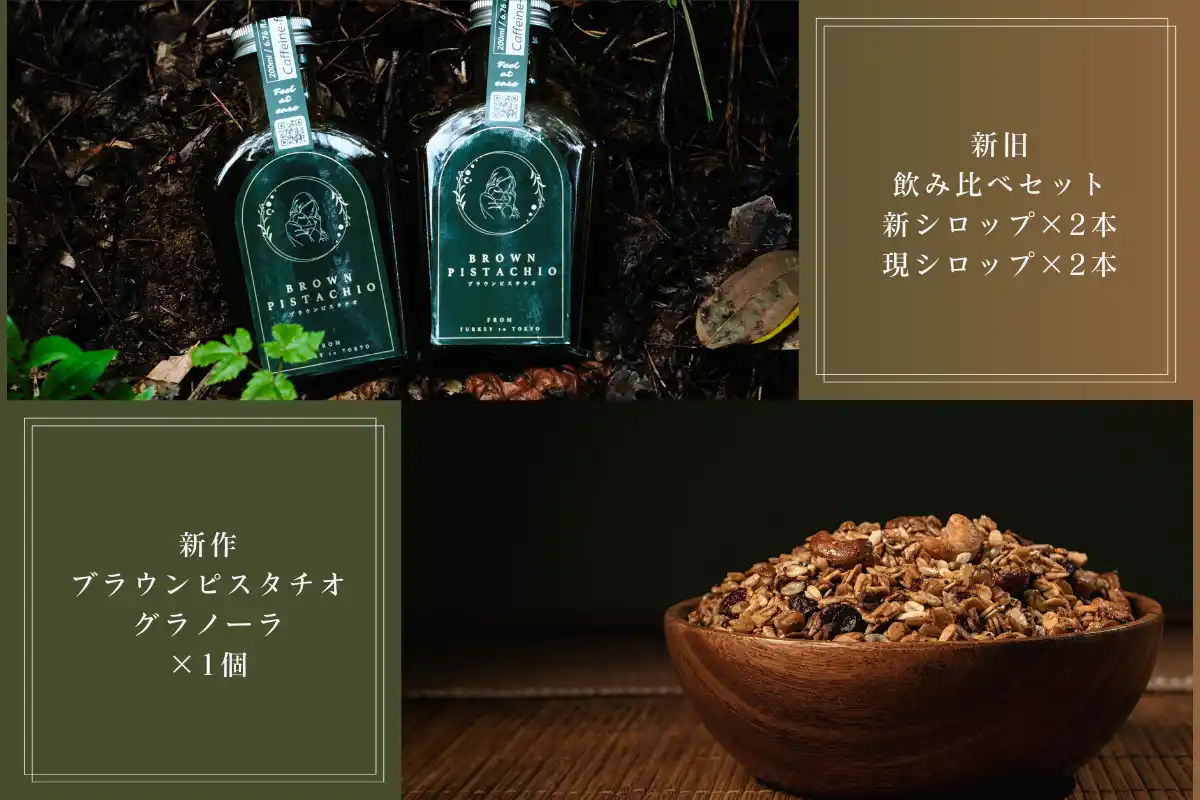 | 10,000円コース:新旧シロップ飲み比べセット+無添加ブラウンピスタチオグラノーラ1袋、お礼状、レシピカード | |||
