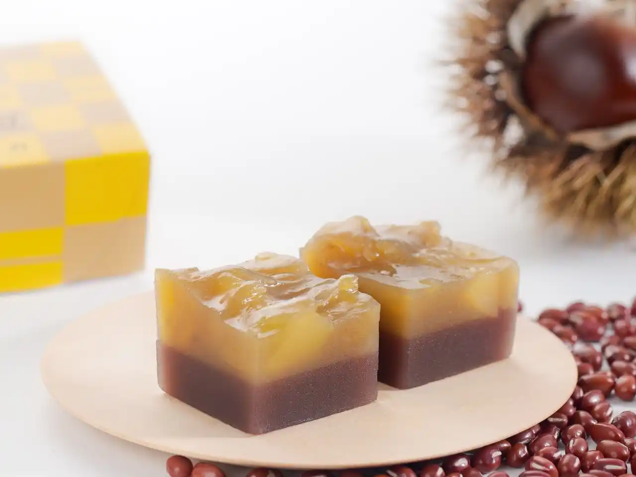 | 栗の甘露煮を入れた栗羊羹と 北海道産小豆のこし餡羊羹を重ねました。ほんのり秋の気配を感じさせる上品な甘みと風味は、季節の贈り物にもぴったりな逸品です。 | |||||||||