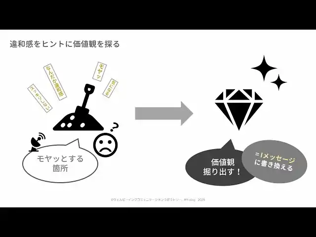 動画では、葛藤から価値観を抽出する様子の一部を紹介しています。(一部異音が入ります) |