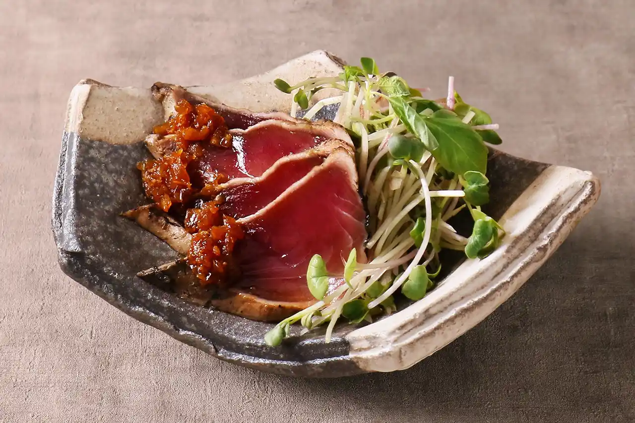 気仙沼産かつおの藁焼き 玉ねぎ醤油 税込990円 |