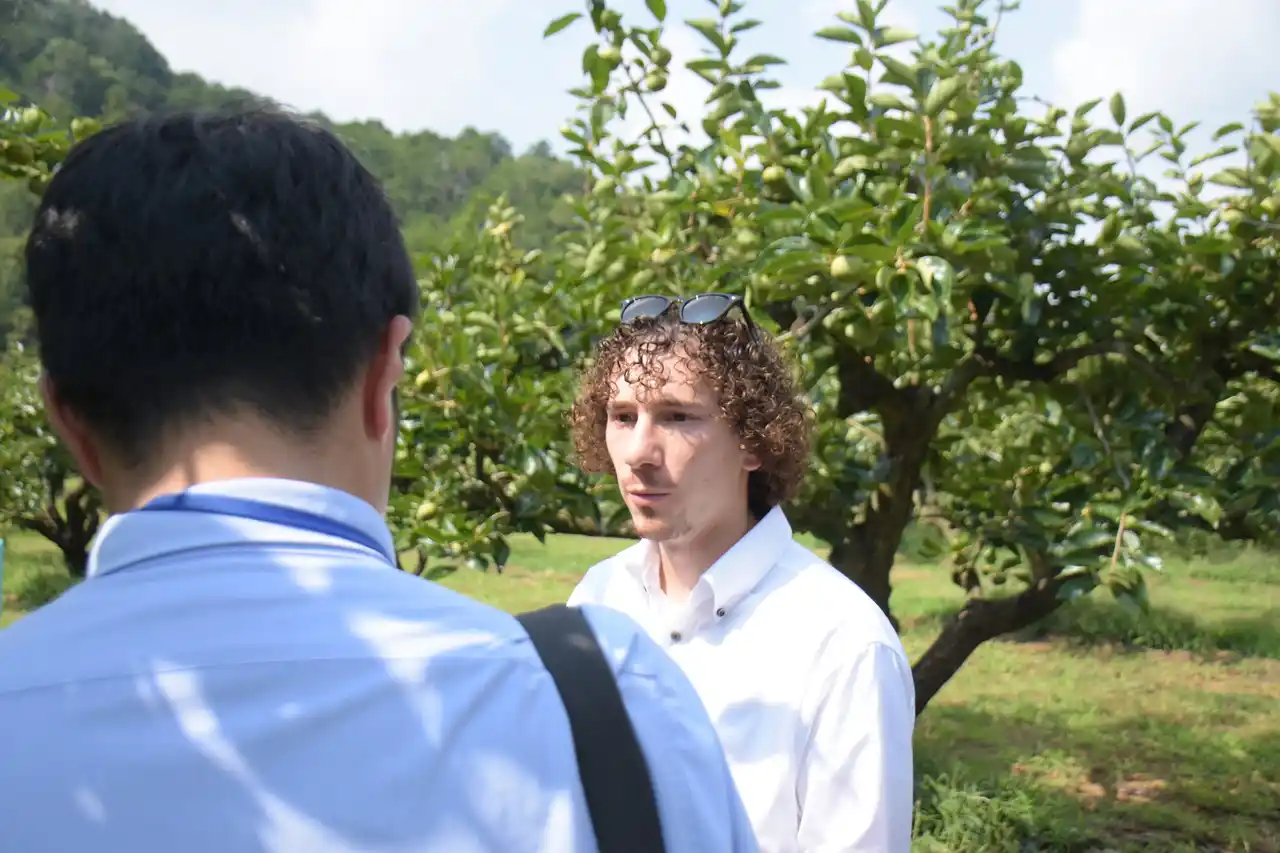 豊橋市地域イノベーション推進室の小野健太郎さんは「次郎柿農家の高齢化や担い手不足を補う手段として、ロボットの活用が課題の解決に繋がるといいなと思ってます。果樹に限らず、重い荷物を運ぶ場面はさまざまな農作物、さらには建設現場などでもあり、アダムの多様な活躍を期待しています」と話しています。 |