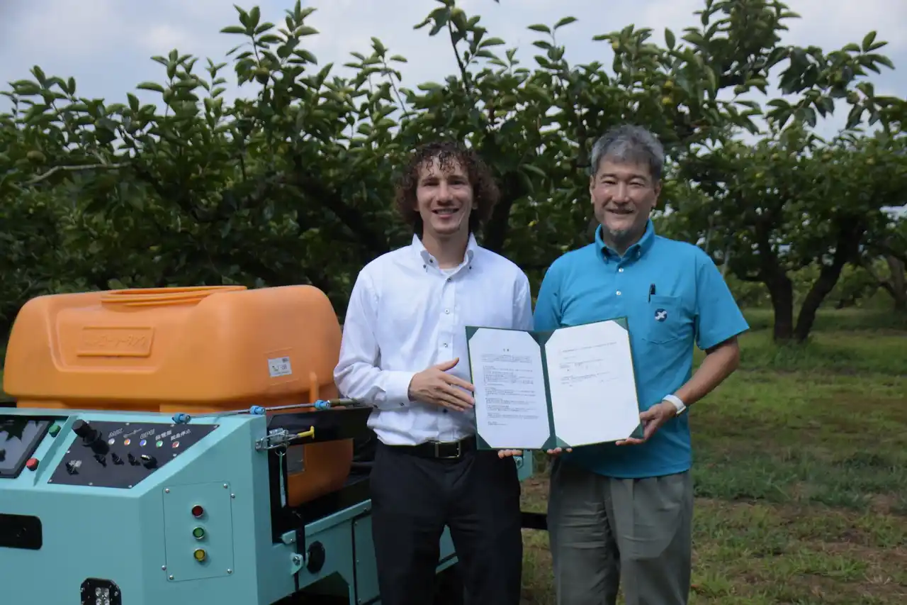 愛知県豊橋市が主催するアグリテックコンテストで入賞し、市内の柿農家と実証実験を重ねてきた「輝翠(きすい)株式会社」(宮城県仙台市、タミル・ブルーム代表)は2025年8月26日(火)、オフロード自律走行AIロボット「Adam(アダム)」 の実演会を開催しました。販売とシェアリングサービスも始まり、人手不足に悩む農家の栽培管理や収穫作業の負担軽減が期待されています。 |