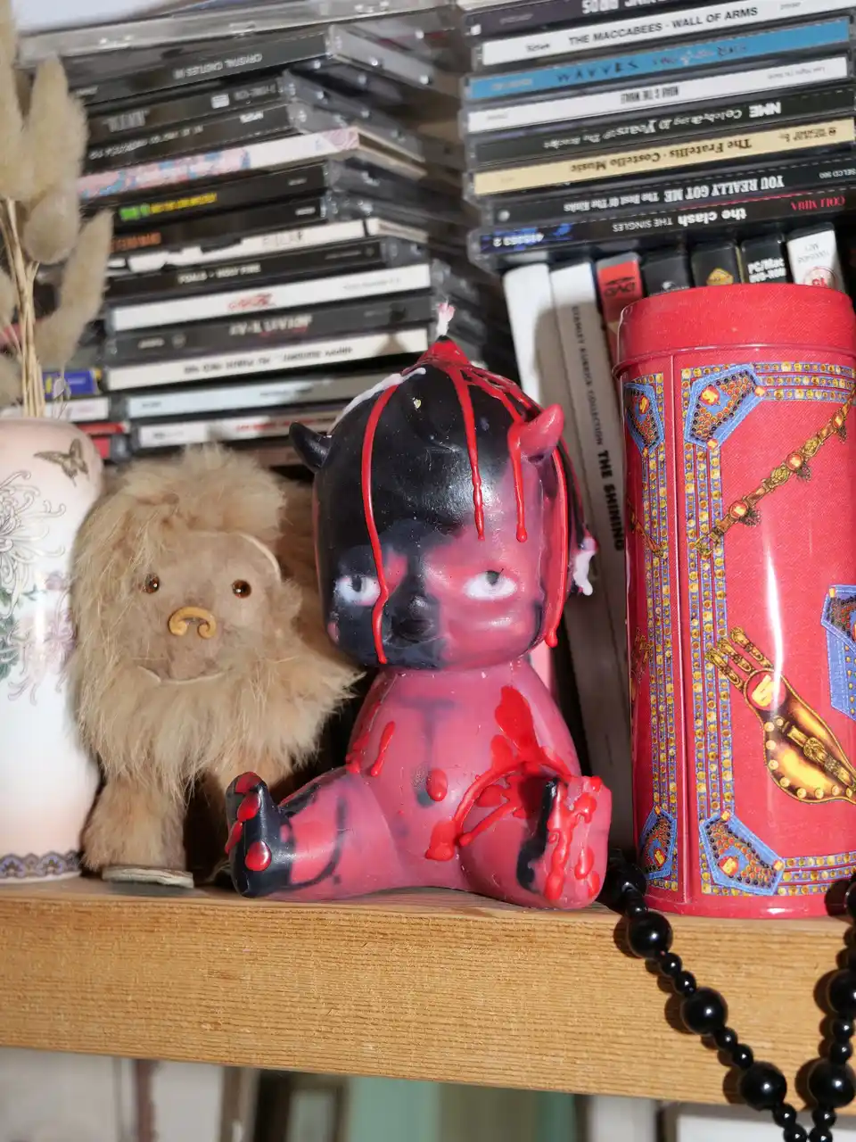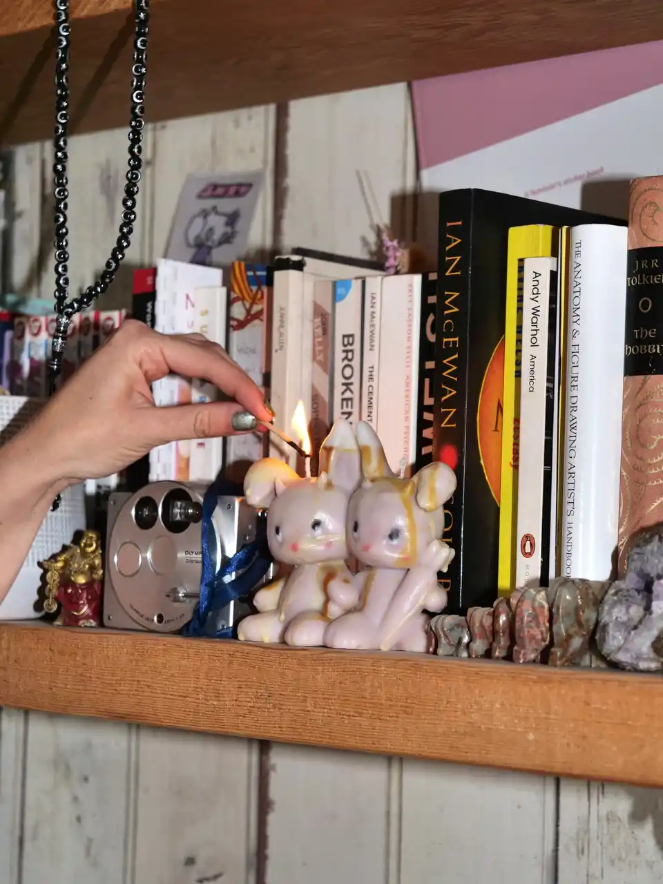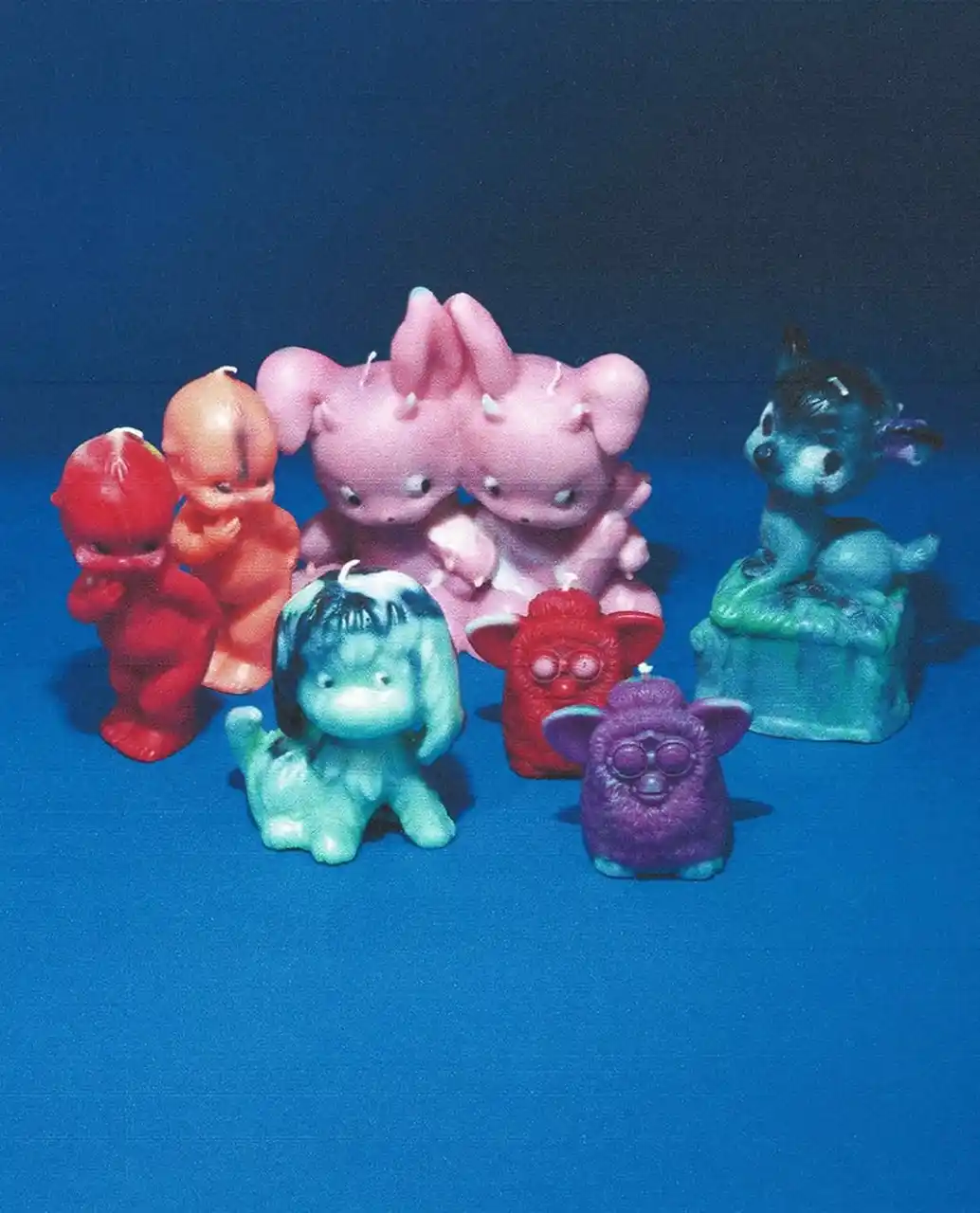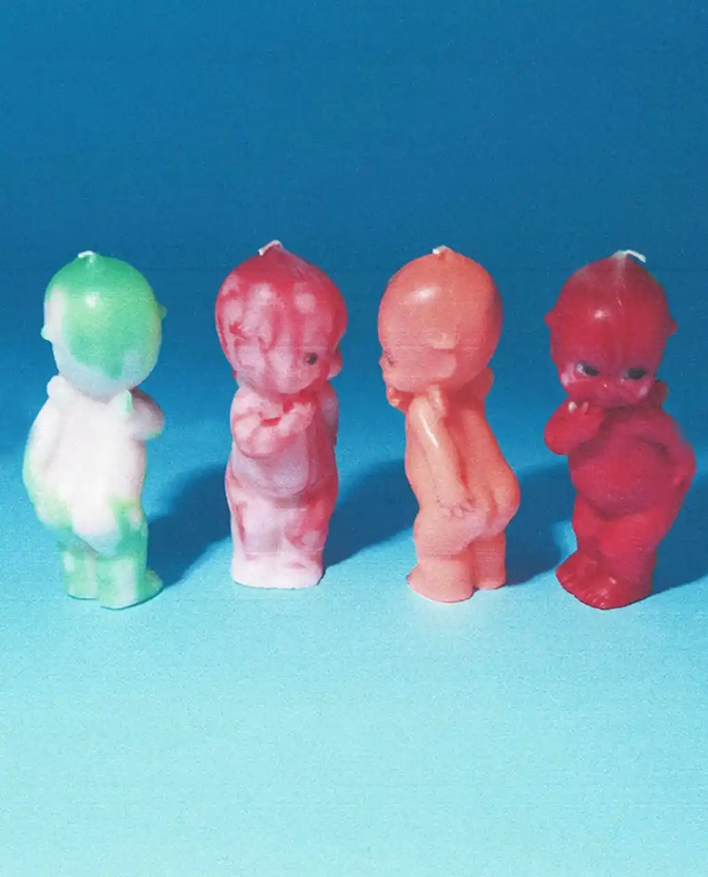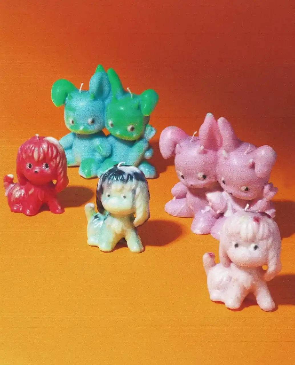 HOPEWORLDのキャンドルは、火を灯すと香りと光でリラックスを演出するだけでなく、アートピースとして置くだけでも空間に魔法をもたらします。棚の上に「友達」として、あるいは「供物」として並べるような、不思議でユーモラスな魅力が特徴です。 |